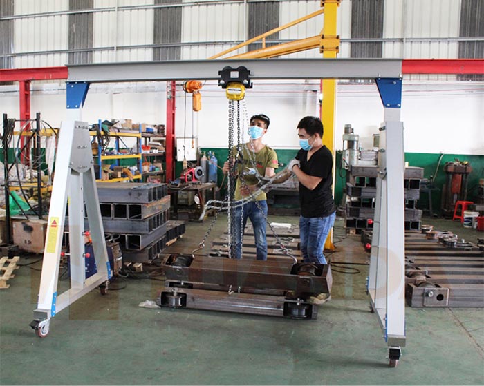 Light duty gantry cranes are small, portable, mobile, both in steel or aluminum. The crane travels on wheels or rails. The load capacity includes 500kg 1000kg 2000lbs 1ton 2ton 3ton 5ton.
